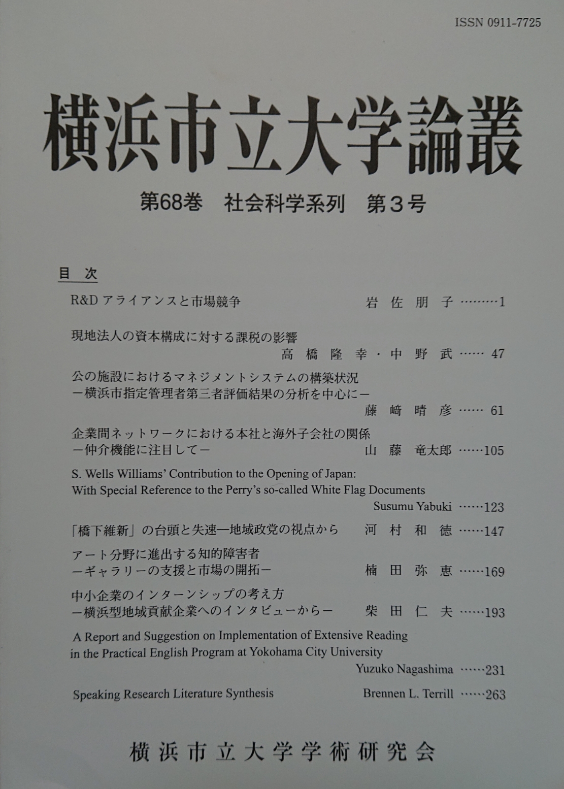 「中小企業のインターンシップの考え方」横浜市立大学論叢:社会科学系列第68回 柴田仁夫著に掲載されました