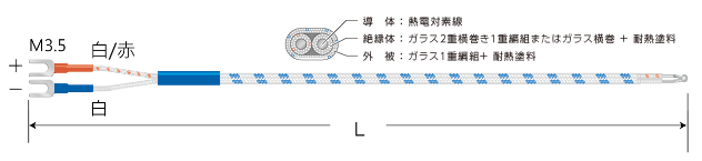 常用限度:350℃、許容差:クラス2(±2.5℃または±0.75%)線径:0.32mm
