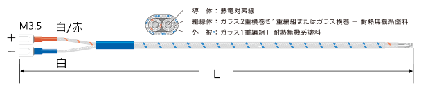 温度センサー デュープレックス(先端溶接)タイプ(クラス2 ガラス被覆)のご注文はこちら